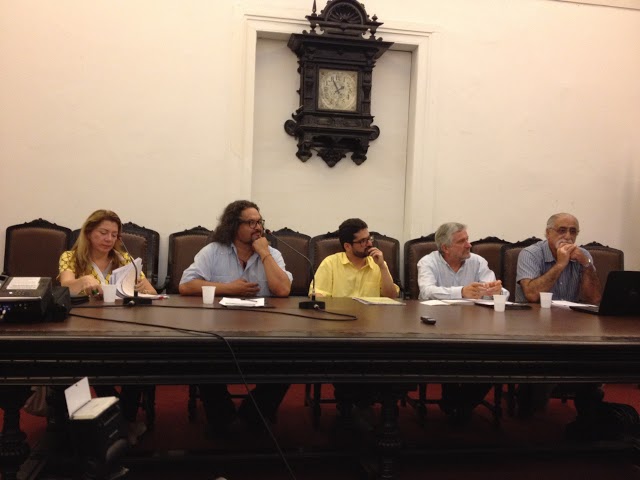Denise Gentil (Instituto de Economia-UFRJ), Ramon Torres (Embaixador itinerante do Equador para Temas Estratégicos e Diretor do Programa “Democracias em Revolução e Revoluções em Democracia”), Marcelo Dias Carcanholo (IE-UFF), Julio Gambina (Universidade Nacional de Rosário/ FISYP – Argentina) e Antonio Elias (REDIU- Uruguai).